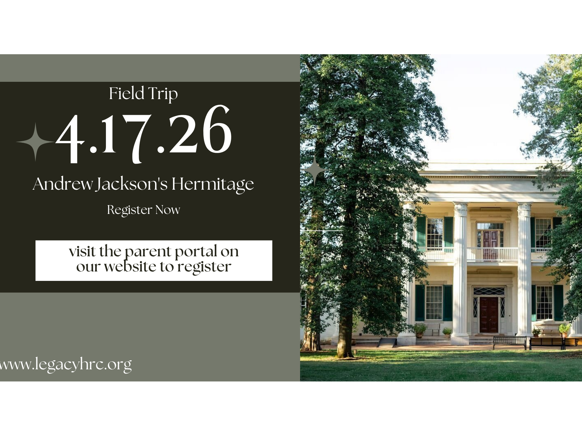 Students and families will journey through the mansion where Andrew Jackson lived, walk the grounds where history unfolded, and encounter powerful stories of the hundreds of enslaved men, women, and children who lived and labored there—gaining a deeper understanding of America’s past and its enduring lessons.